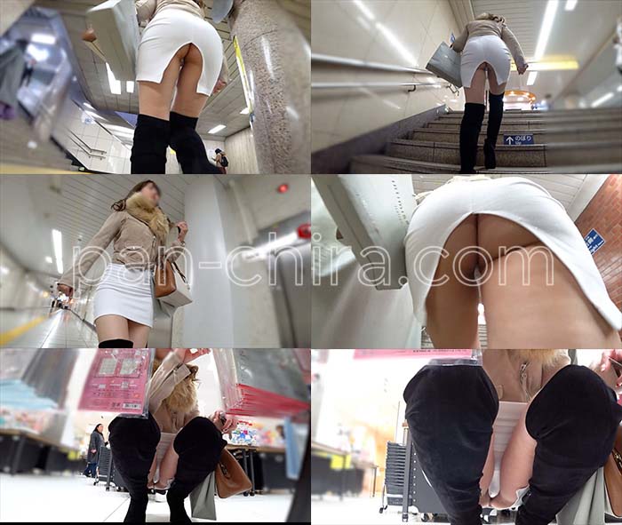 特大スリットで尻見せ露出散歩!ノーパンレベルの超絶食い込み!美尻が引き立つ!