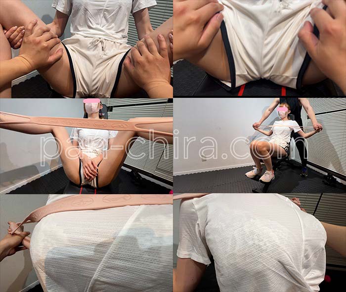 美女の限界ベンチプレス!バーベルで身動き取れなくなった生徒にセクハラで涙目 オナニー見せつけ大量ぶっかけ